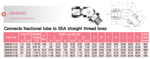 Name : Positional 45 Degree SAE Male Elbow